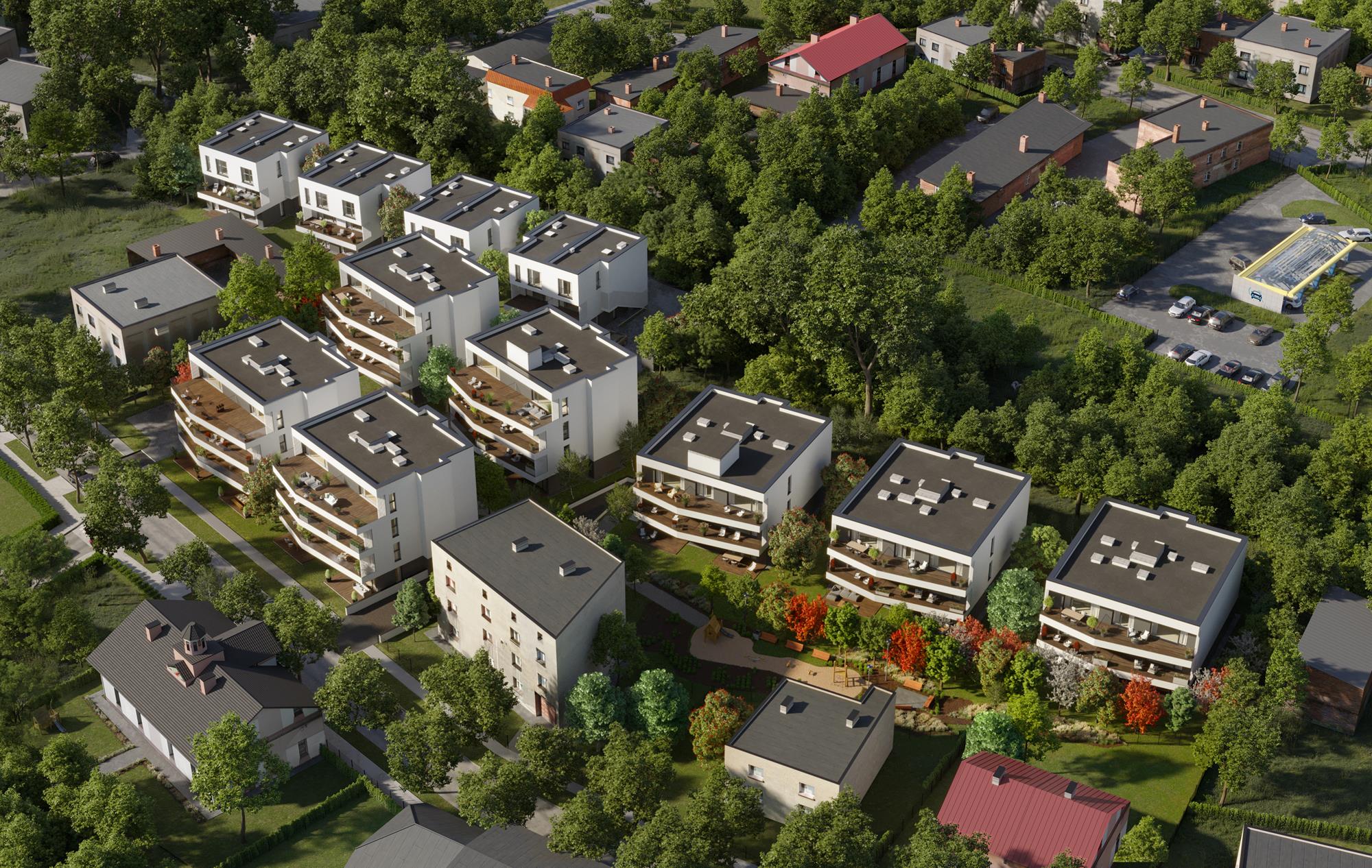 - 16 mieszkań, po 4 w budynku